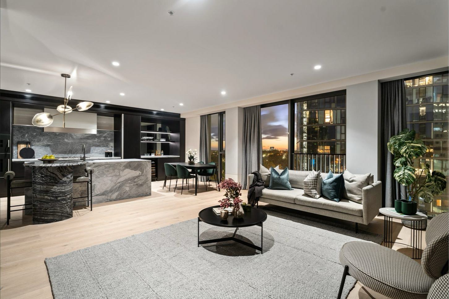 The Eighth’s exclusive 36 home-sized apartments designed by award-winning MIM Design feature stone and timber flooring, marble bathrooms, Gaggenau, Liehberr and Vintec kitchen appliances, full laundry packages and all window furnishings.